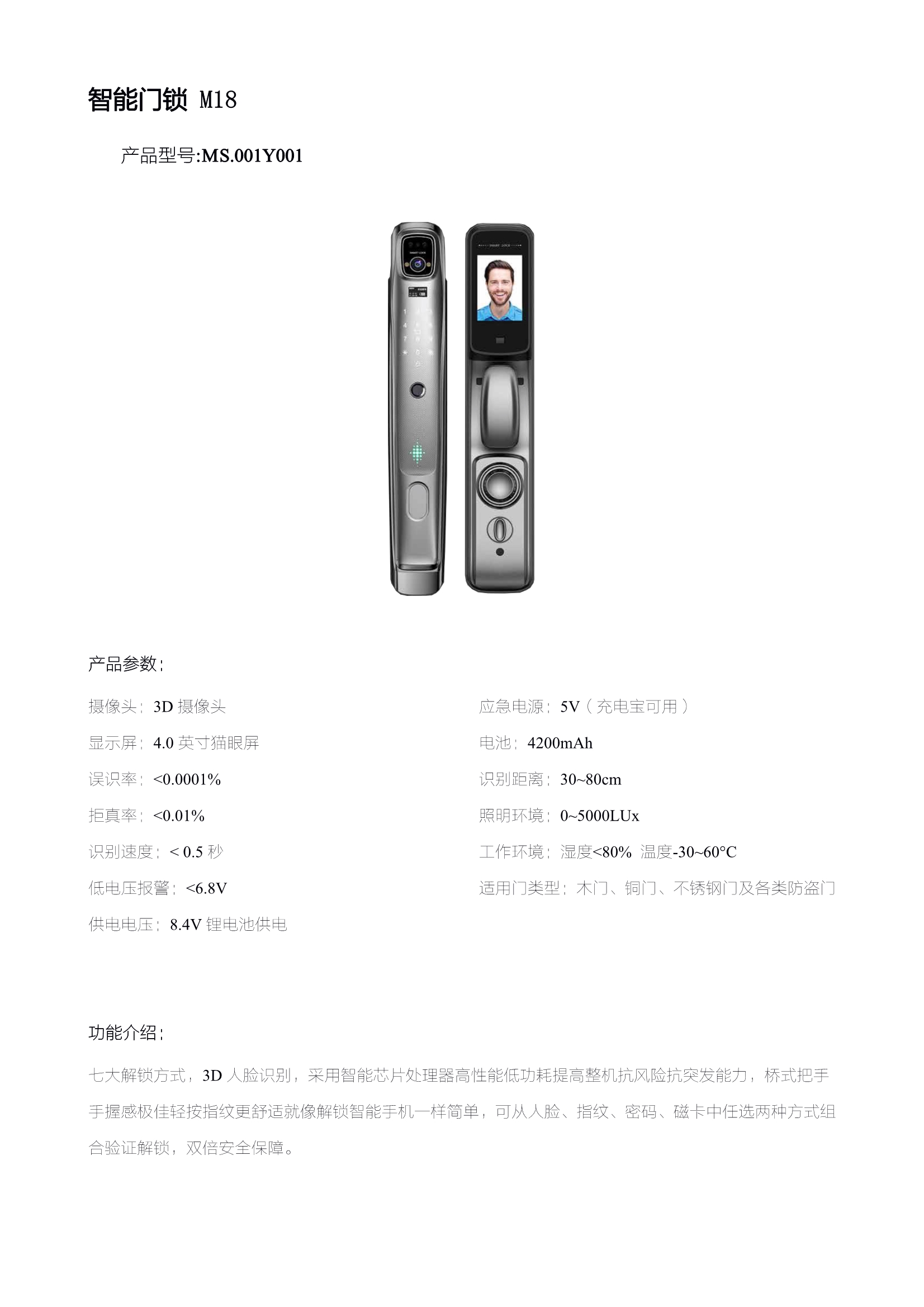 3D人臉快速(sù)識別 麻花传剧MV在线看星空(yà)雲智能門鎖M18